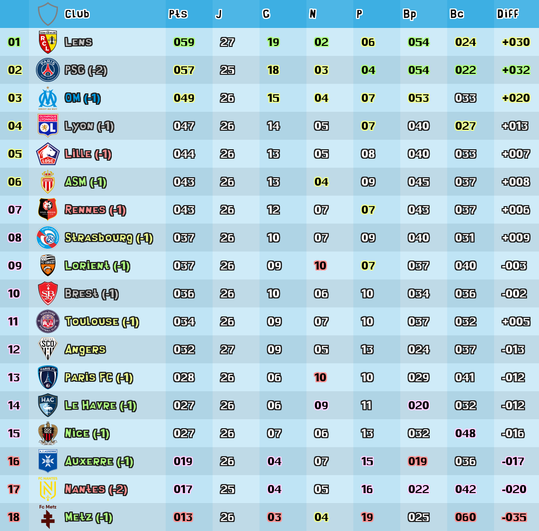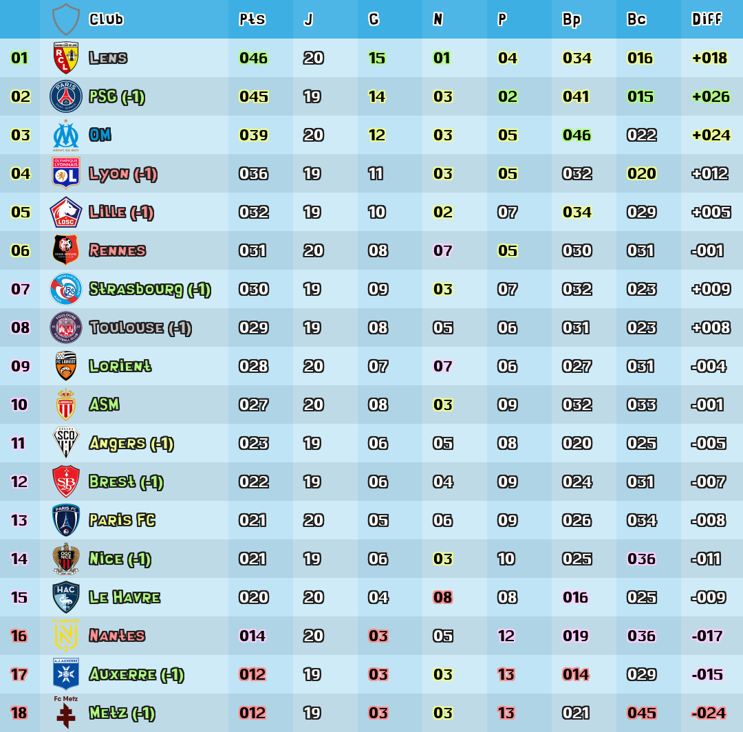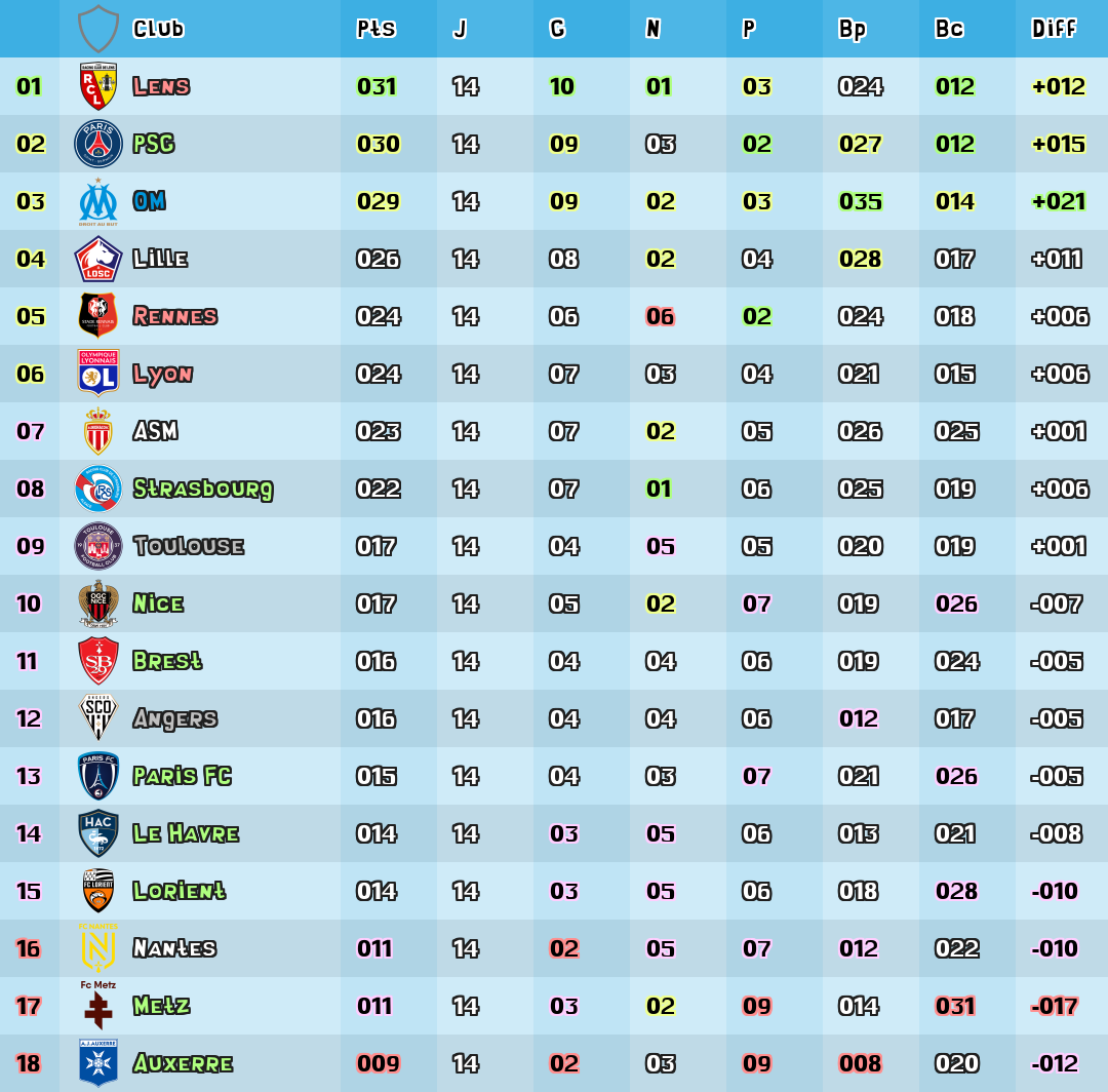 | Diff | Difference de buts |