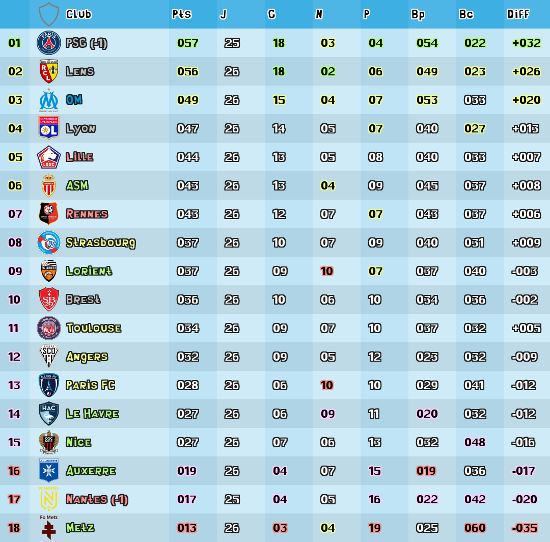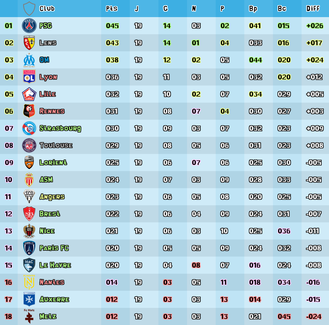 | Diff | Difference de buts |