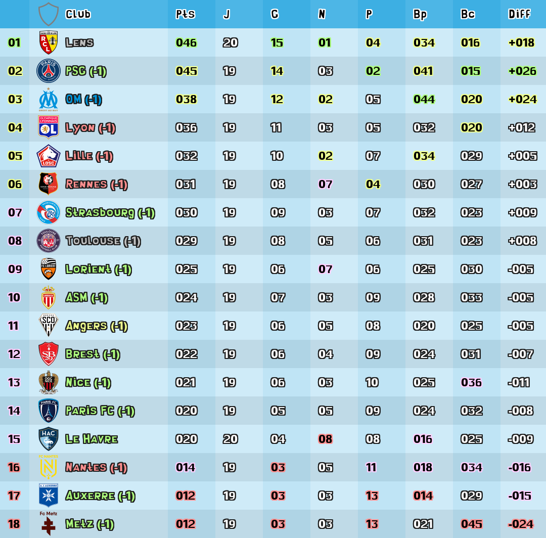 | Diff | Difference de buts |